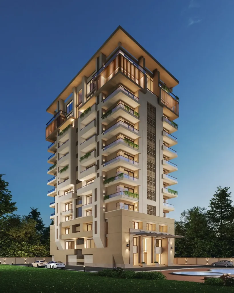 The building’s sculptural form and sleek finishes redefine modern living, turning your home into a sanctuary.